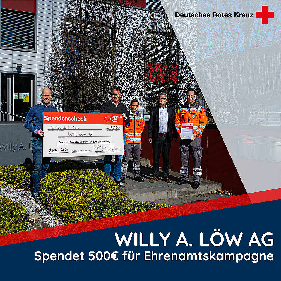 Hierbei hat sich die Willy Löw AG unter der Leitung von Martin Bendrick bereiterklärt, uns mit 500€ zu unterstützen. Für diese großzügige Spende danken wir von ganzem Herzen.